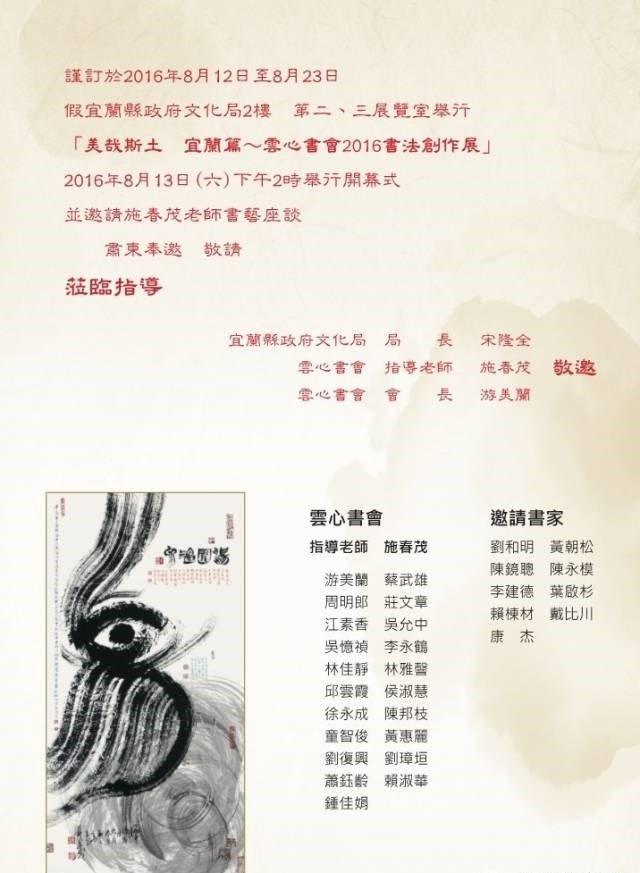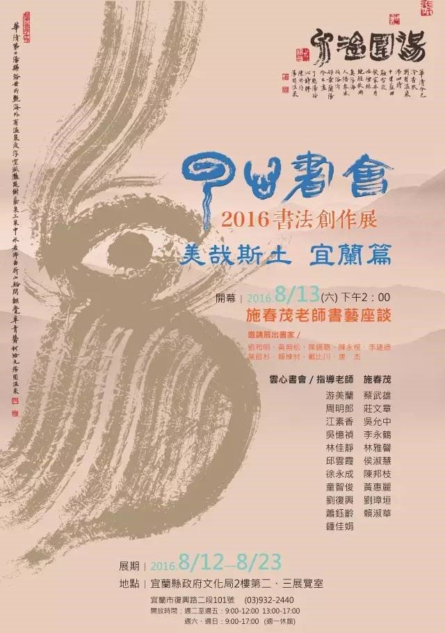 開幕:2016.8.13(六)下午2:00 施春茂老師書藝座談